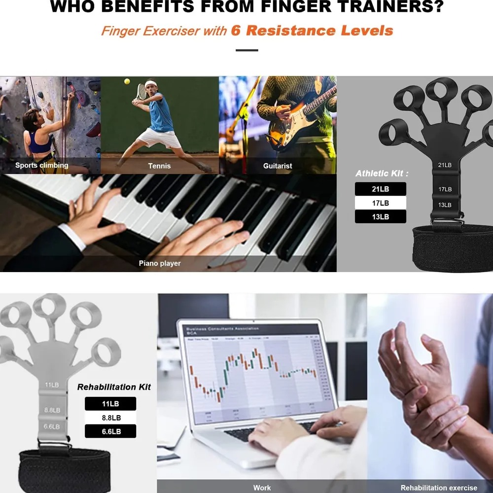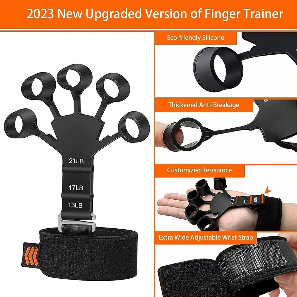 Finger Exerciser Silicone Grip Strength Trainer with 3 Adjustable Resistance, Wrist Fixing Finger Stretcher Trainer Stress Relief › Factor Sports